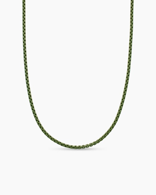 Box Chain Necklace Sterling Silver with Green Stainless Steel, 2.7mm
