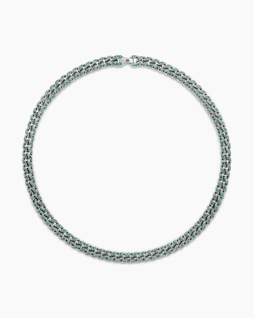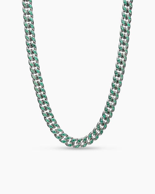 Curb Chain Necklace 18K White Gold with Emeralds, 11.5mm