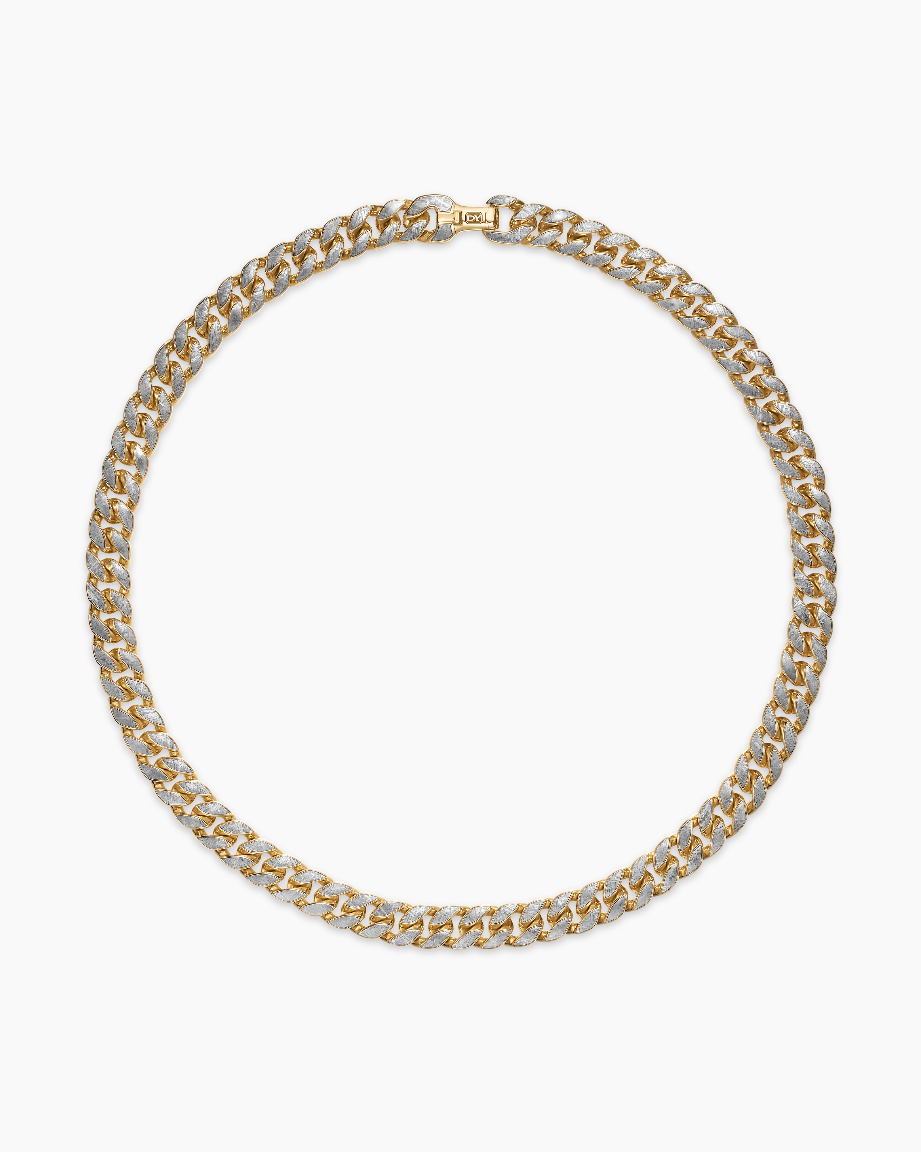 Curb Chain Necklace 18K Yellow Gold with Meteorite, 11.5mm