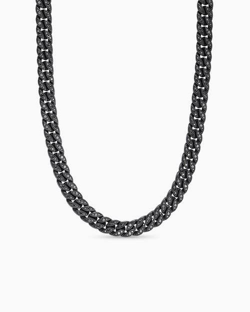 Curb Chain Necklace Black Titanium with Black Diamonds, 11.5mm