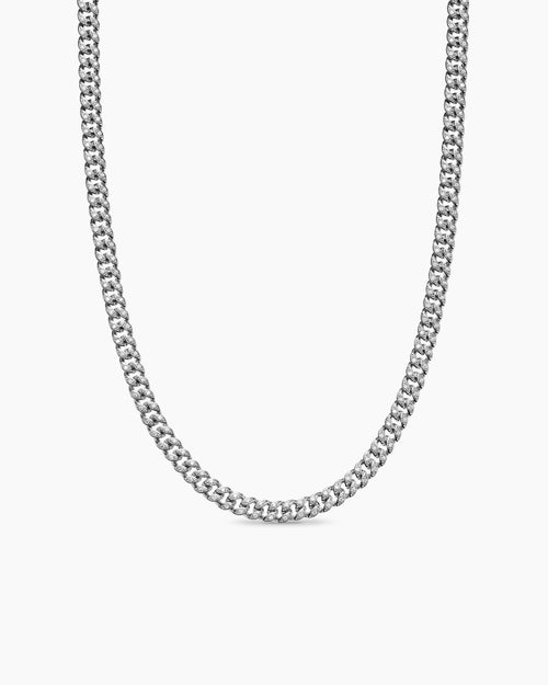 Curb Chain Necklace Platinum with Diamonds, 6mm