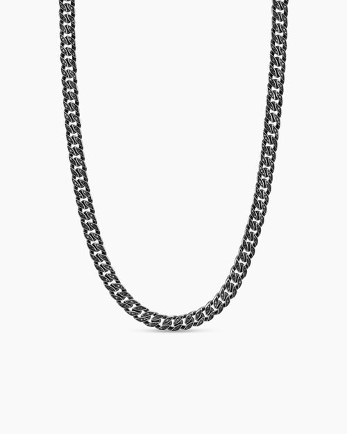 Curb Chain Necklace Sterling Silver with Black Diamonds, 8mm
