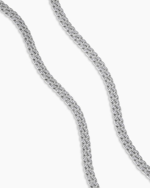 Curb Chain Necklace Sterling Silver with Diamonds, 8mm