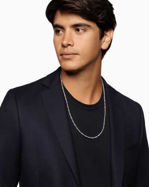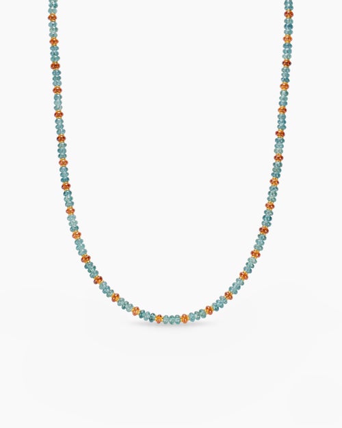 Spiritual Beads Necklace 18K Yellow Gold with Indicolite and Mandarin Garnet, 4mm