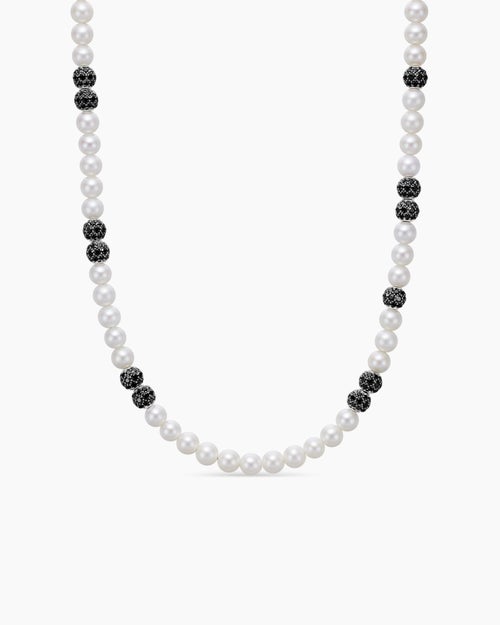 Spiritual Beads Necklace Sterling Silver with Pearls and Pavé Black Diamonds, 6mm
