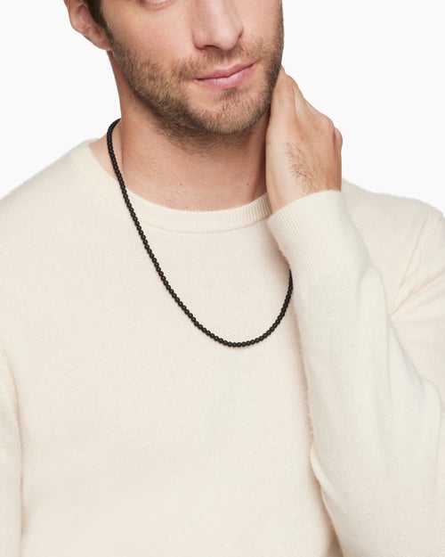 Spiritual Beads Necklace Black Onyx with Sterling Silver, 4mm