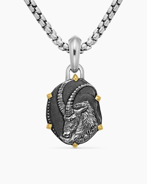 Capricorn Amulet Sterling Silver with 18K Yellow Gold, 23mm