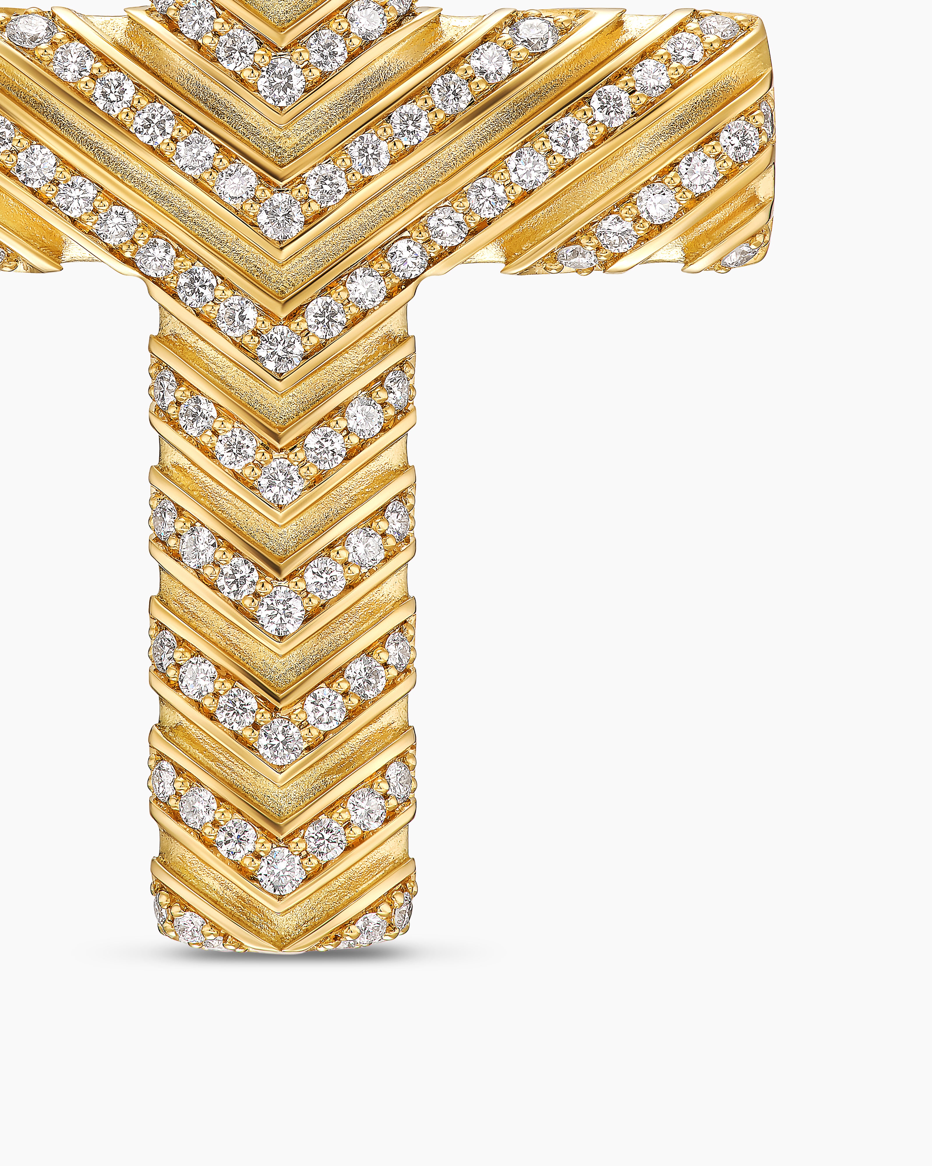 Chevron Cross Pendant 18K Yellow Gold with Diamonds, 36mm