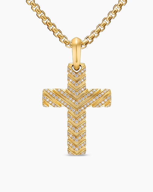 Chevron Cross Pendant 18K Yellow Gold with Diamonds, 36mm