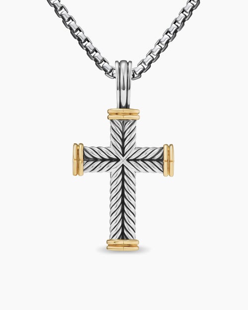 Like many David Yurman motifs, Chevron is a play on light and dark. The deeply carved valleys in the design are often oxidized to contrast with the highly polished flutes.