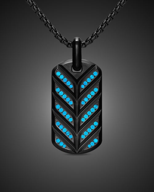 Chevron Fluorescent Tag Black Titanium with Diamonds, 35mm