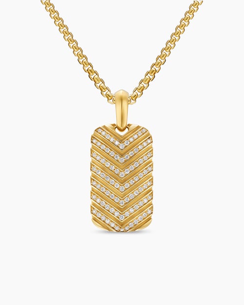Chevron Tag 18K Yellow Gold with Diamonds, 27mm