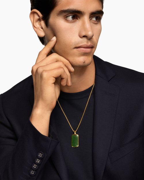 Chevron Tag 18K Yellow Gold with Nephrite Jade, 34mm