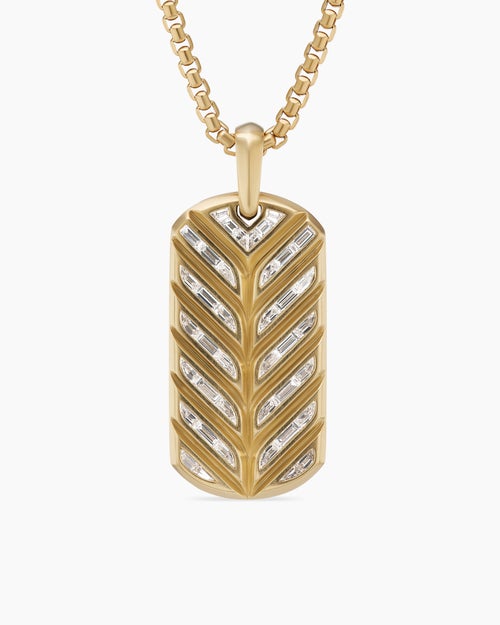 Chevron Tag 18K Yellow Gold with Diamond Baguettes, 35mm