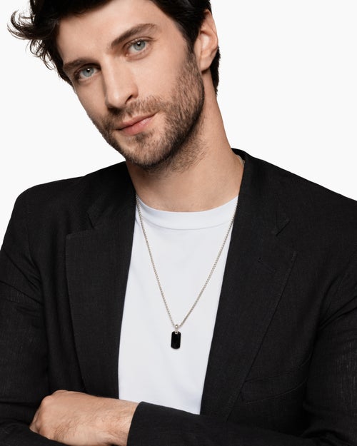 Chevron Tag Sterling Silver with Black Onyx, 21mm