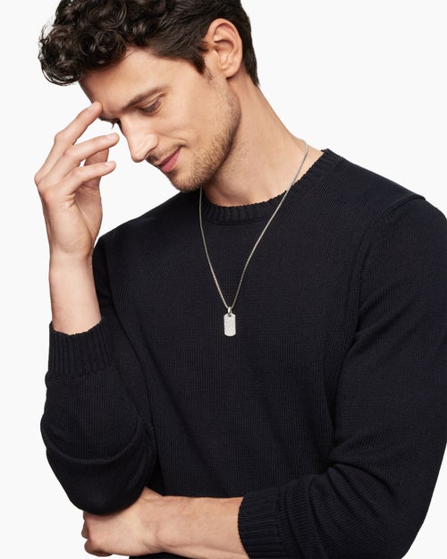 Tag only; chain not included. To complete the look, add a box chain.