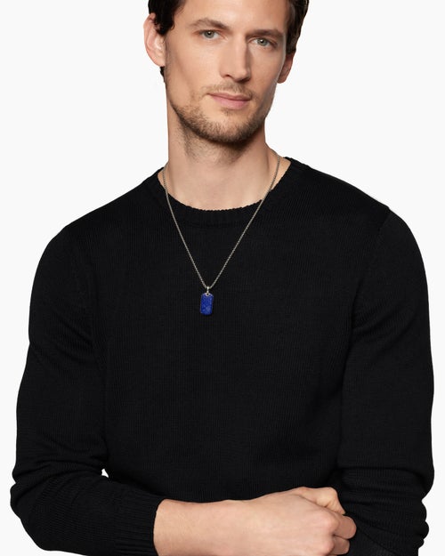 Chevron Tag Sterling Silver with Lapis, 27mm