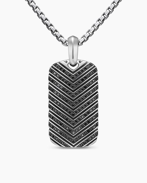 Chevron Tag Sterling Silver with Black Diamonds, 34mm