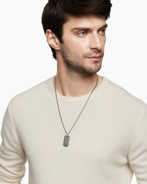 Chevron Tag Sterling Silver with Meteorite, 35mm