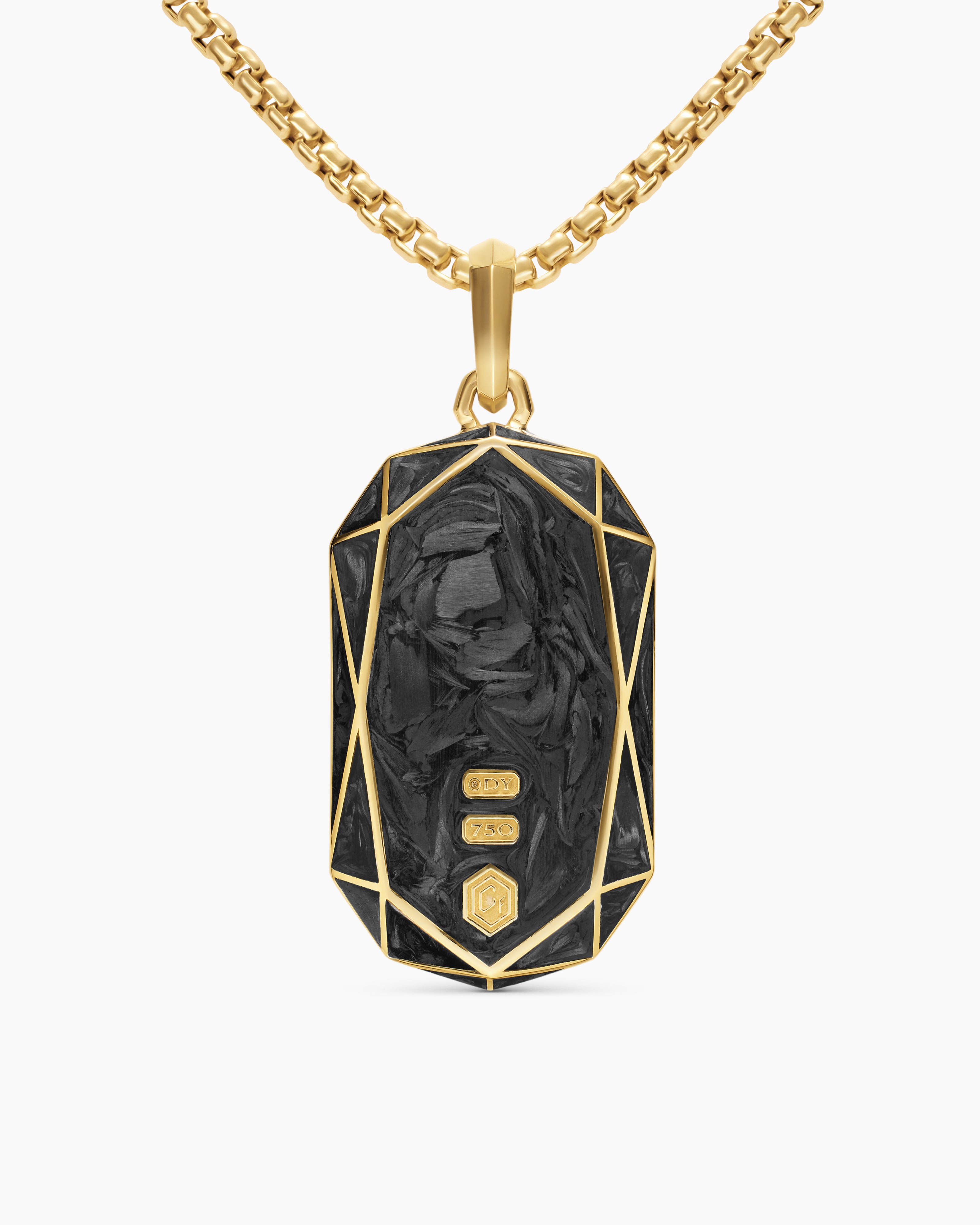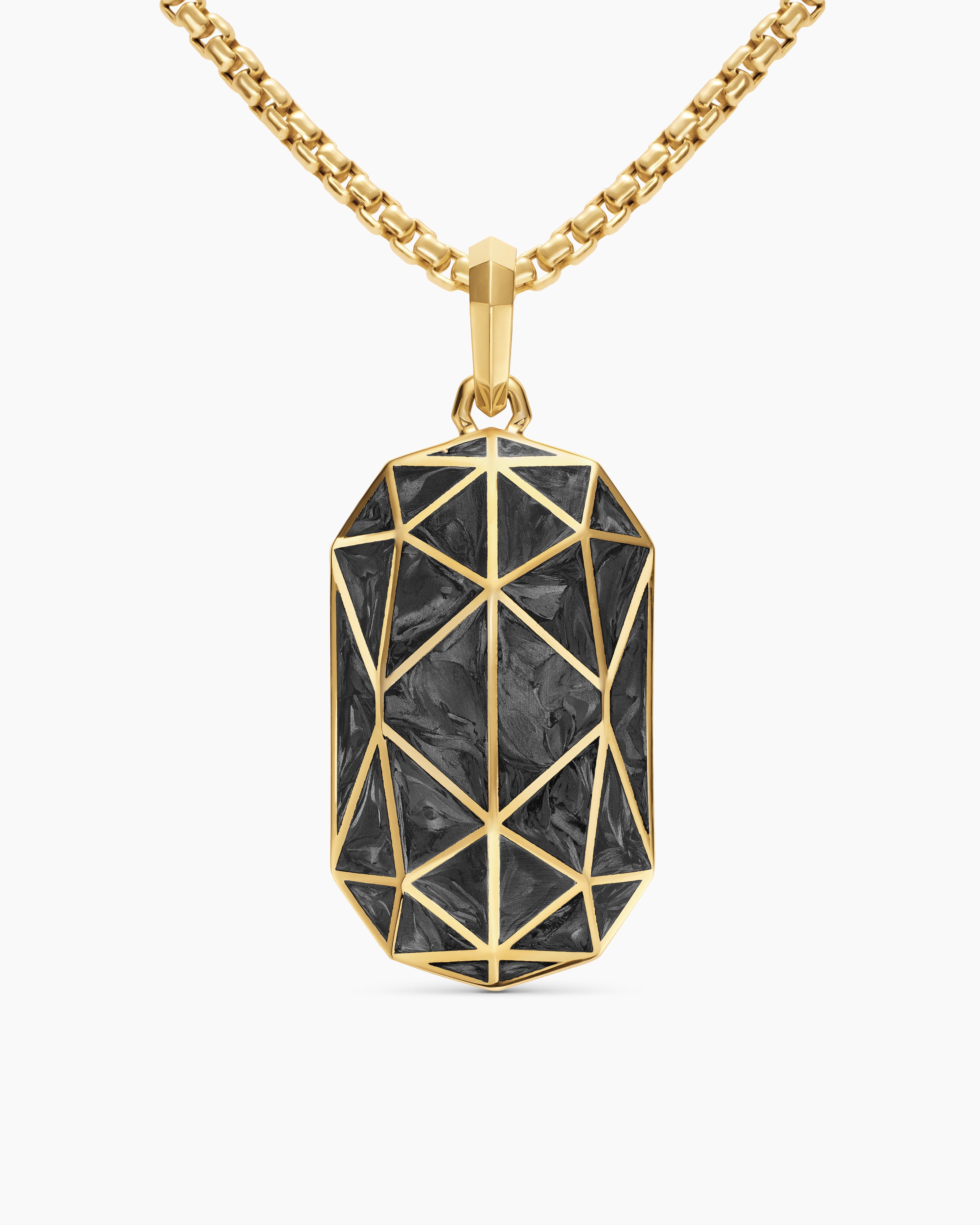 Faceted Amulet 18K Yellow Gold with Forged Carbon, 36.3mm