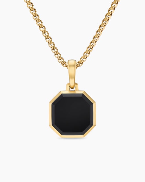 Faceted Stone Amulet 18K Yellow Gold with Black Onyx, 16mm