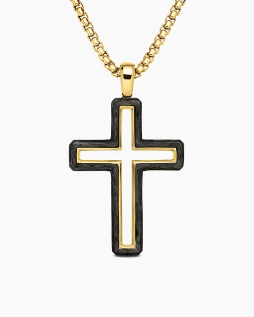 Forged Carbon Cross Pendant 18K Yellow Gold, 37mm
