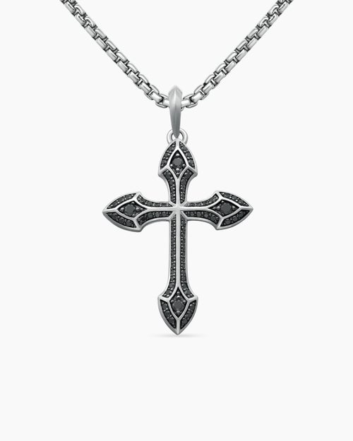 Gothic Cross Pendant 18K White Gold with Black Diamonds, 36.5mm
