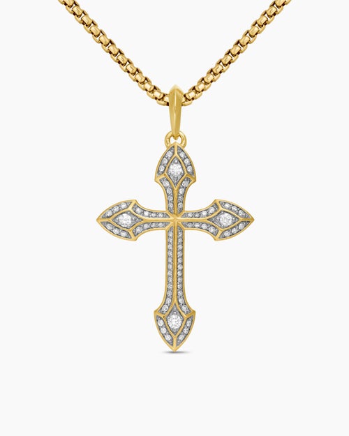 Gothic Cross Pendant 18K Yellow Gold with Diamonds, 36.5mm