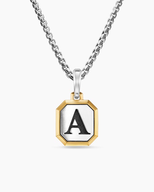 Initial Amulet Sterling Silver with 14K Yellow Gold A, 17mm