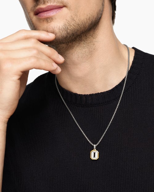 Initial Amulet Sterling Silver with 14K Yellow Gold I, 17mm