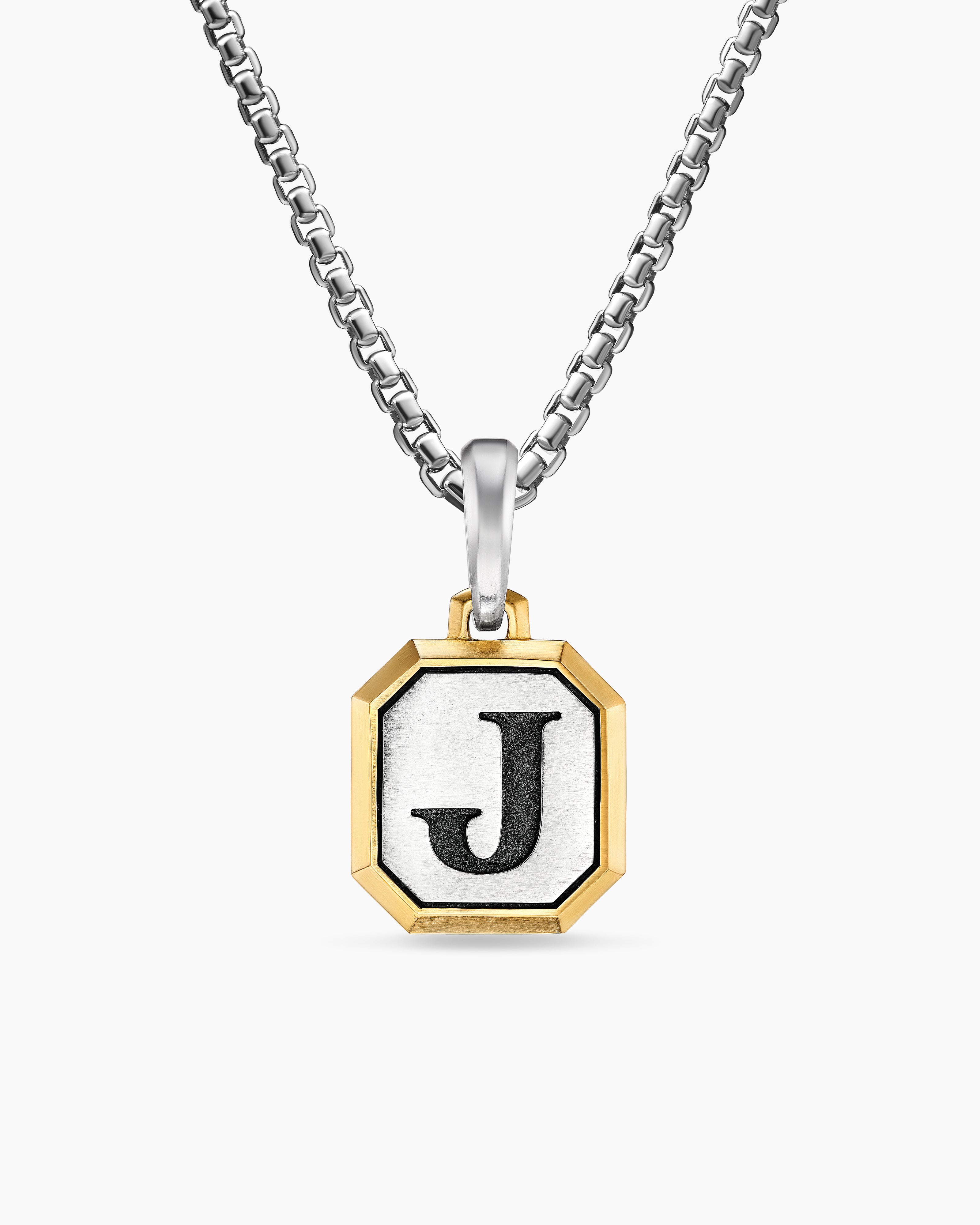 Initial Amulet Sterling Silver with 14K Yellow Gold J, 17mm