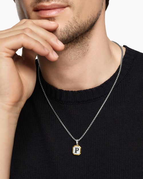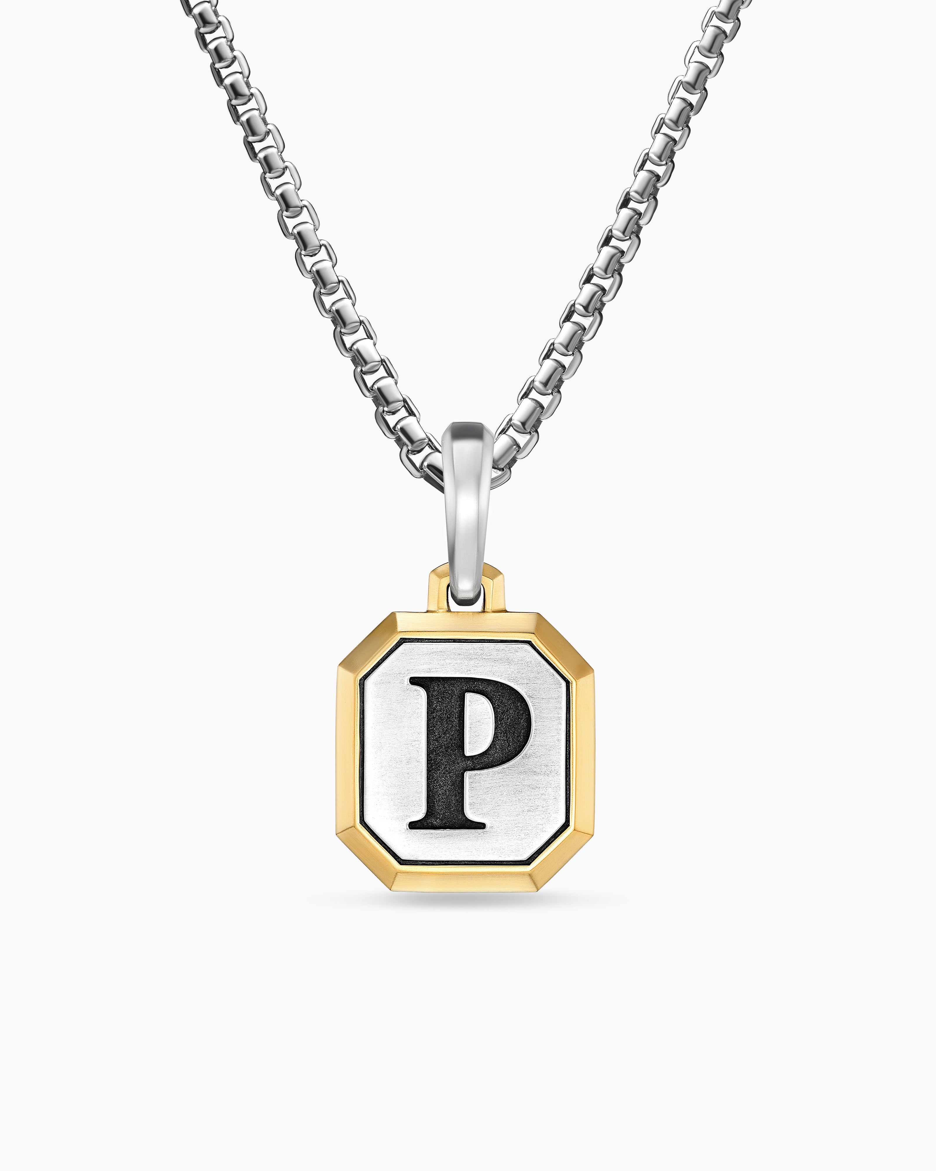 Initial Amulet Sterling Silver with 14K Yellow Gold P, 17mm