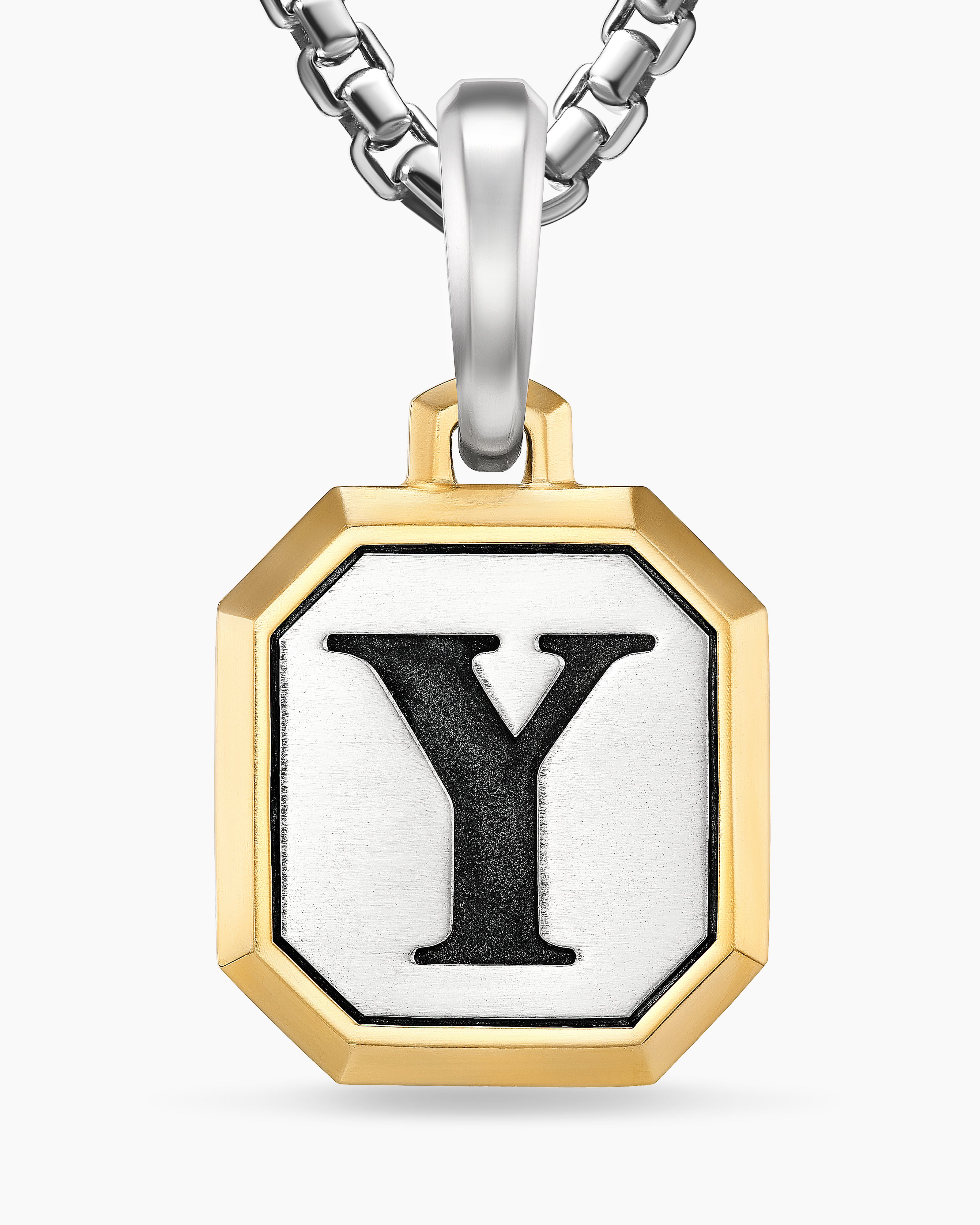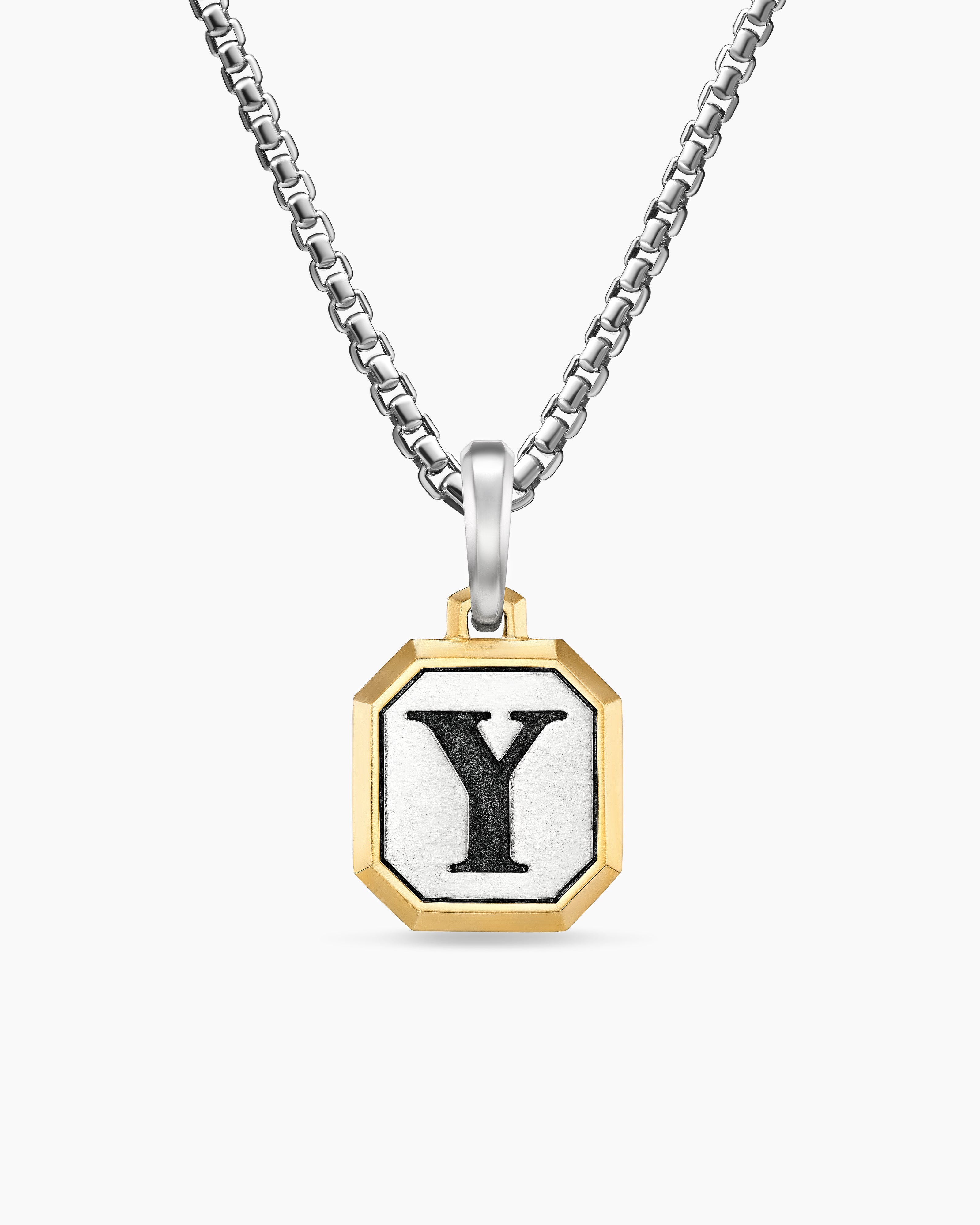 Initial Amulet Sterling Silver with 14K Yellow Gold Y, 17mm