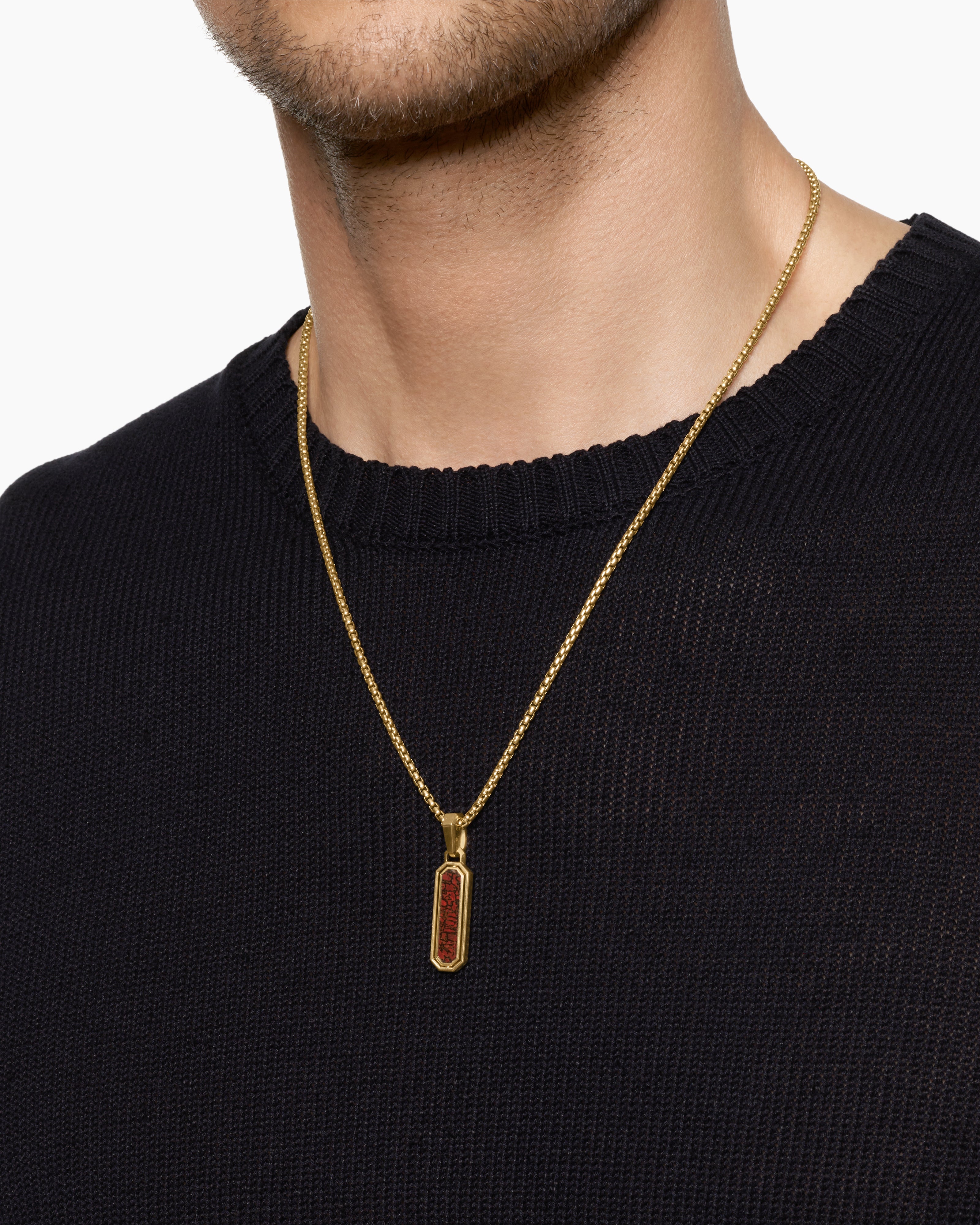 Streamline® Inlay Amulet 18K Yellow Gold with Red Agate and Meteorite, 30.7mm