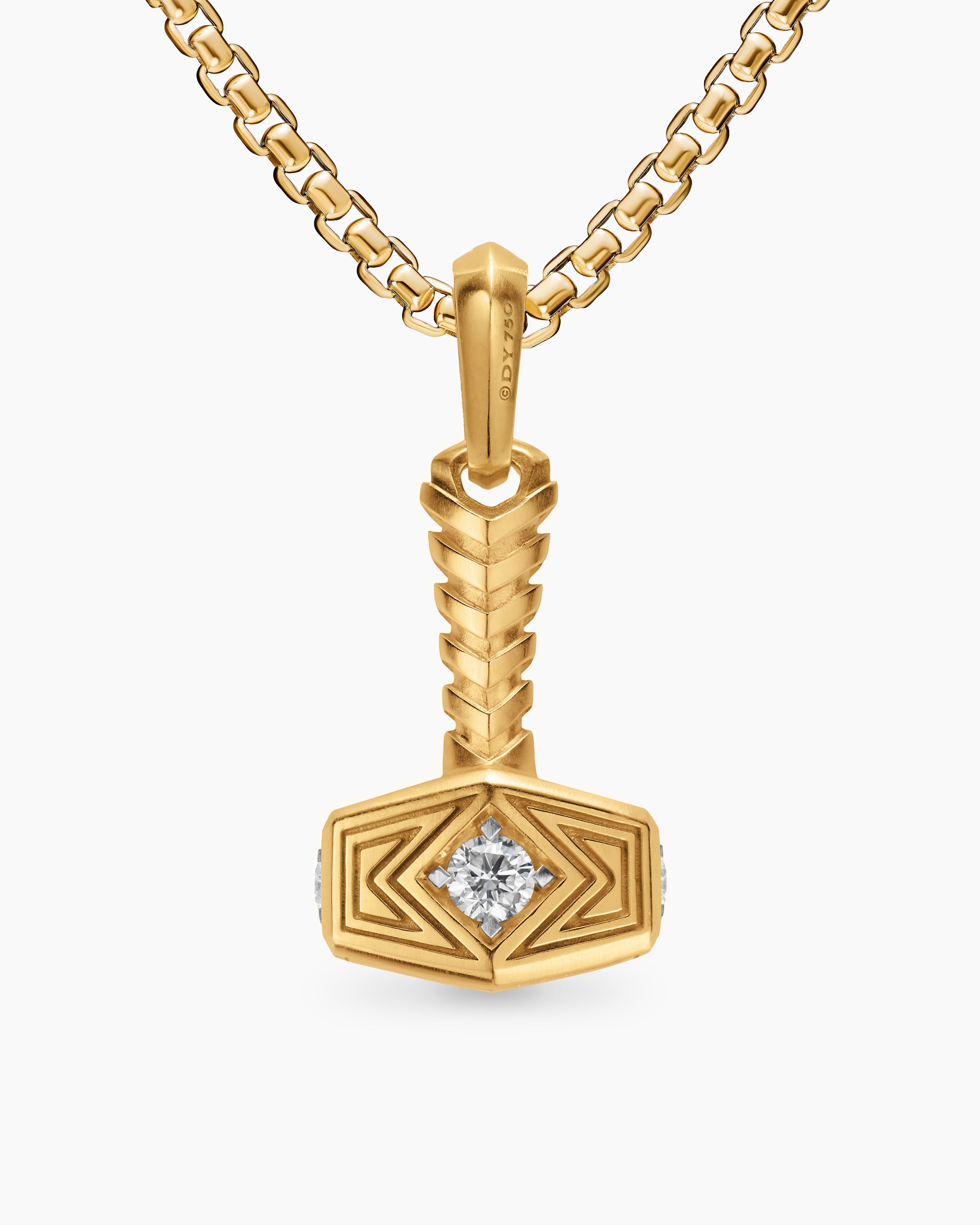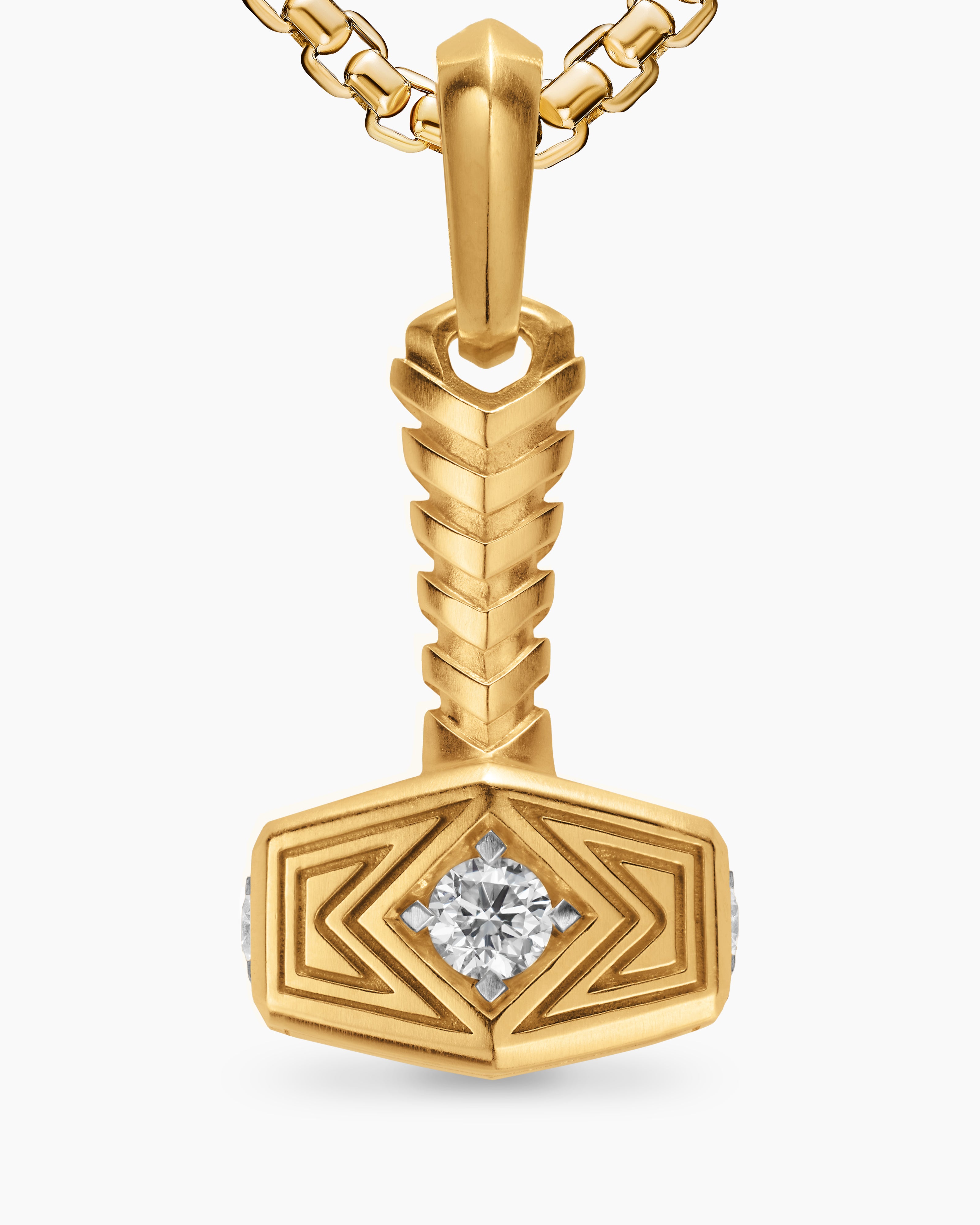 Thor Hammer Amulet 18K Yellow Gold with Diamonds, 25mm