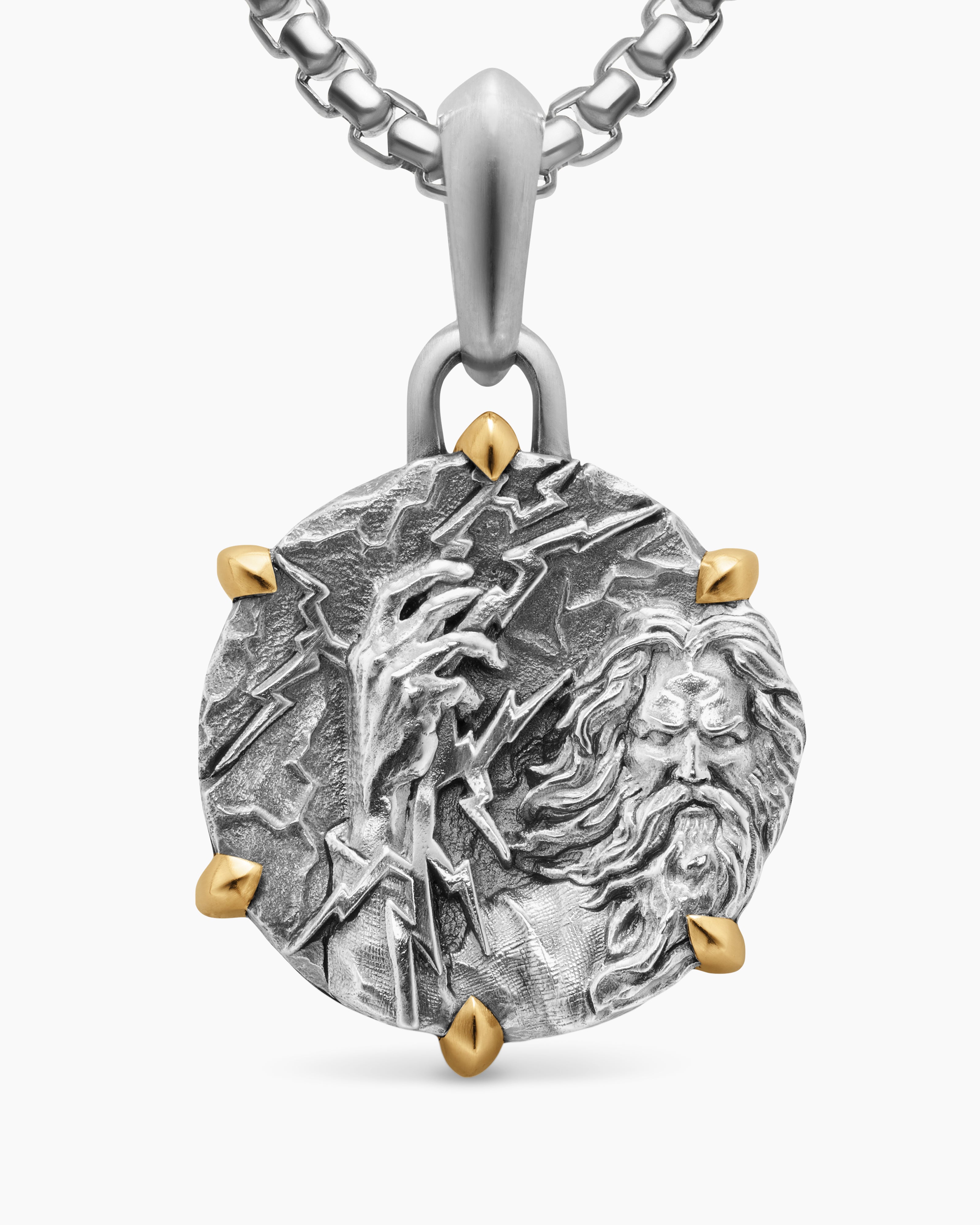 Zeus Amulet Sterling Silver with 18K Yellow Gold, 26.4mm
