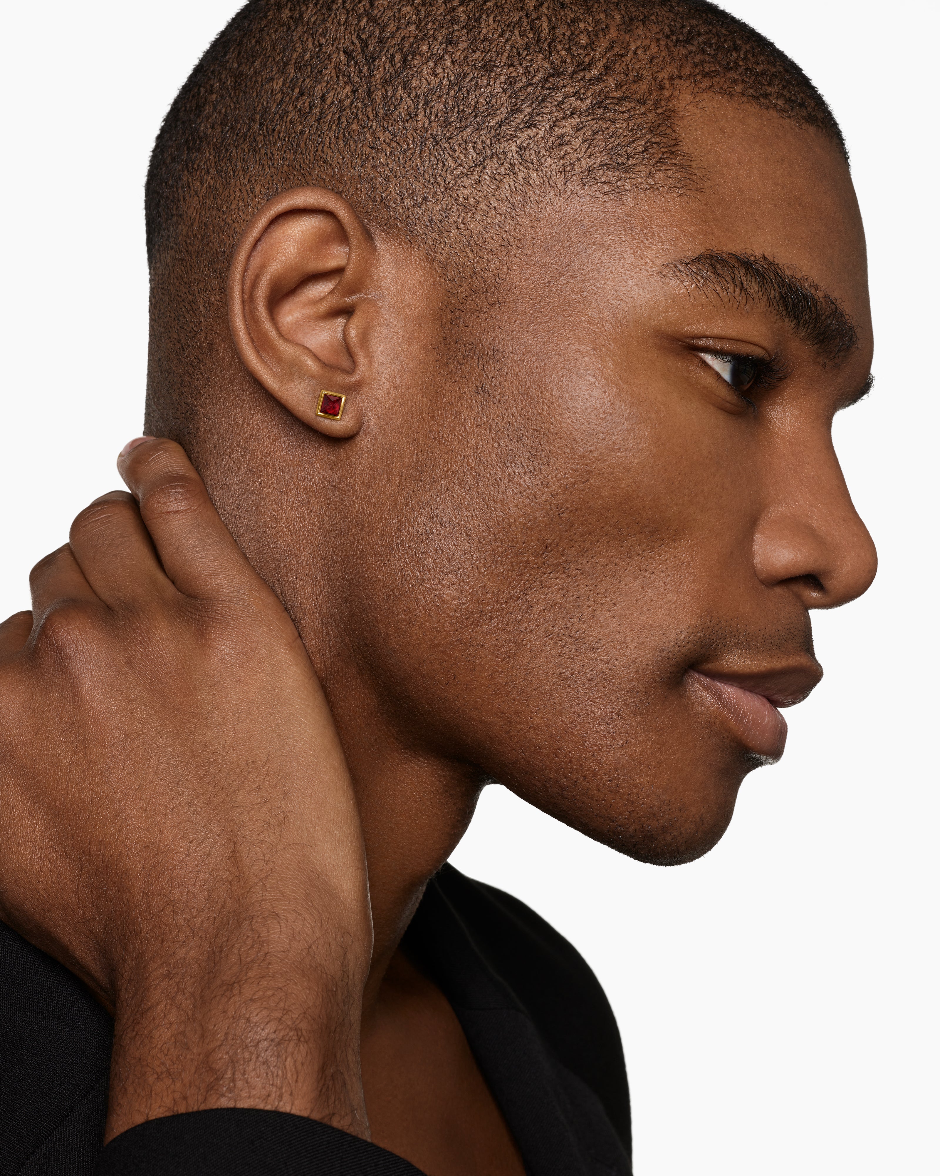 Pyramid Stud Earring 18K Yellow Gold with Garnet, 6.6mm
