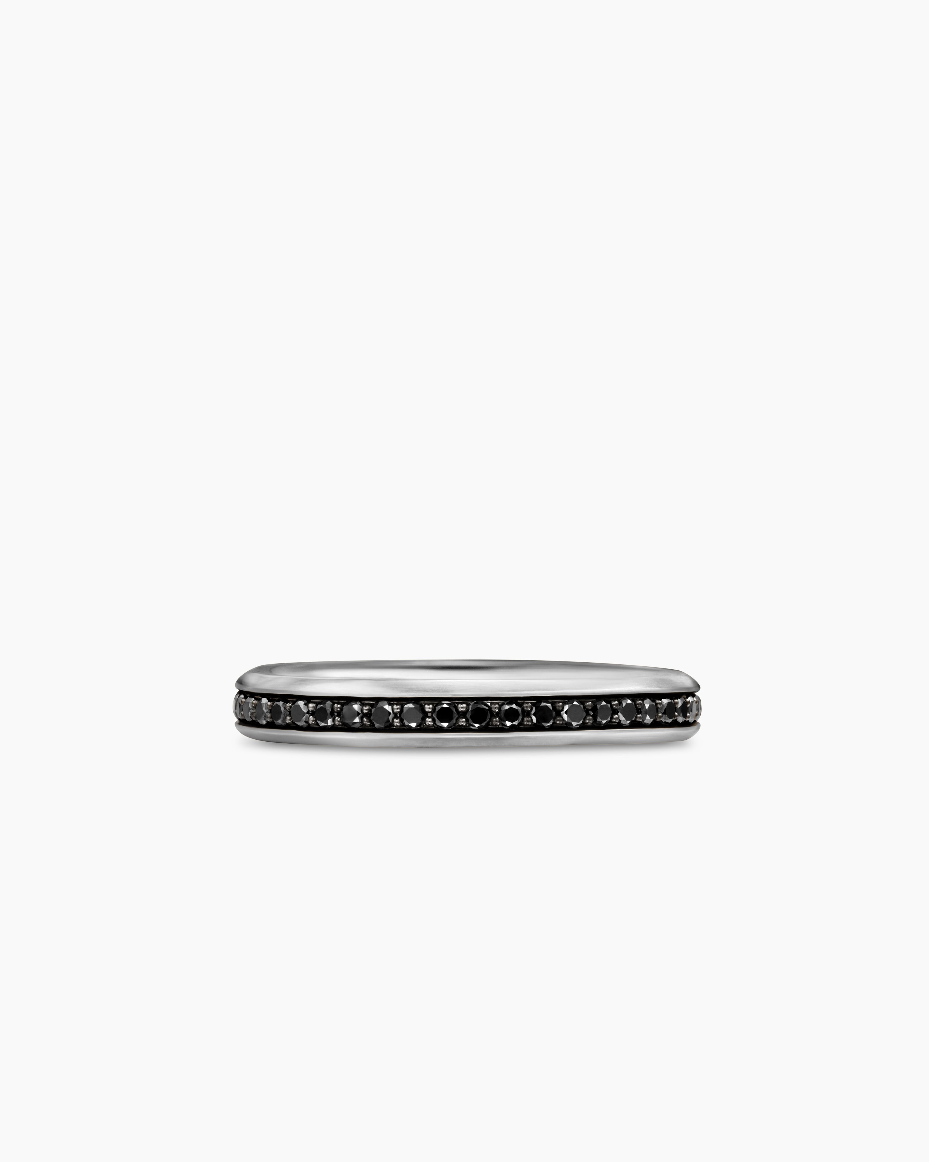 Beveled Band Ring 18K White Gold with Black Diamonds, 3.5mm