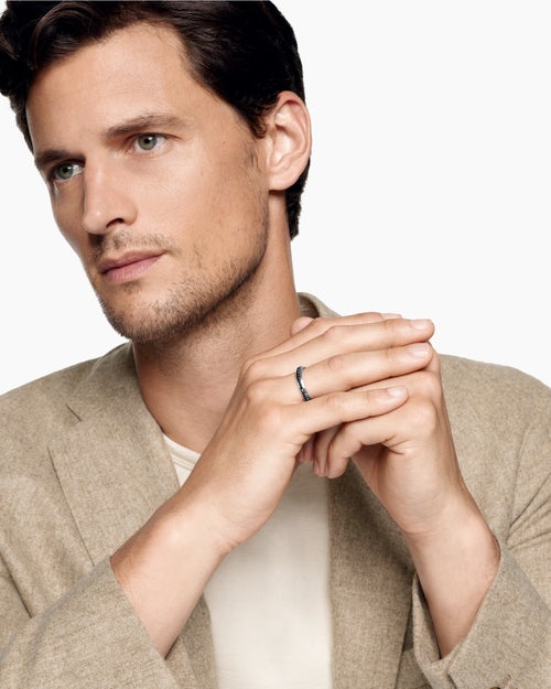 Beveled Band Ring 18K White Gold with Black Diamonds, 3.5mm