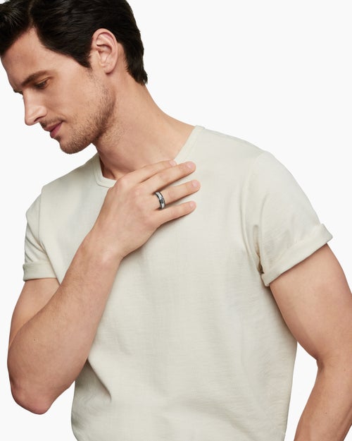 Beveled Band Ring 18K White Gold with Black Diamonds, 8mm