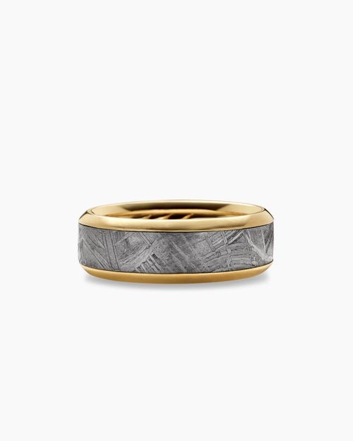 Beveled Band Ring 18K Yellow Gold with Meteorite, 8.5mm