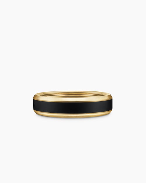 Beveled Band Ring 18K Yellow Gold with Black Titanium, 6mm