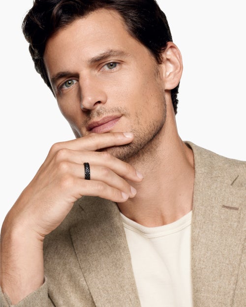 Chevron is an ancient motif with an inverted "v" shape—one of the oldest symbols in human history. David Yurman recognized something familiar in this simple form: viewed side-by-side, chevron’s zigzagging lines appear like a flattened image of our signature Cable design.