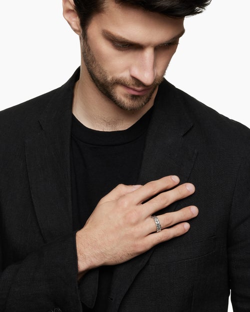 Chevron is an ancient motif with an inverted "v" shape—one of the oldest symbols in human history. David Yurman recognized something familiar in this simple form: viewed side-by-side, chevron’s zigzagging lines appear like a flattened image of our signature Cable design.