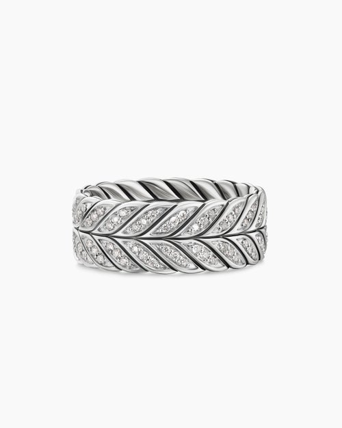 Chevron Pavé Band Ring Sterling Silver with Diamonds, 9mm