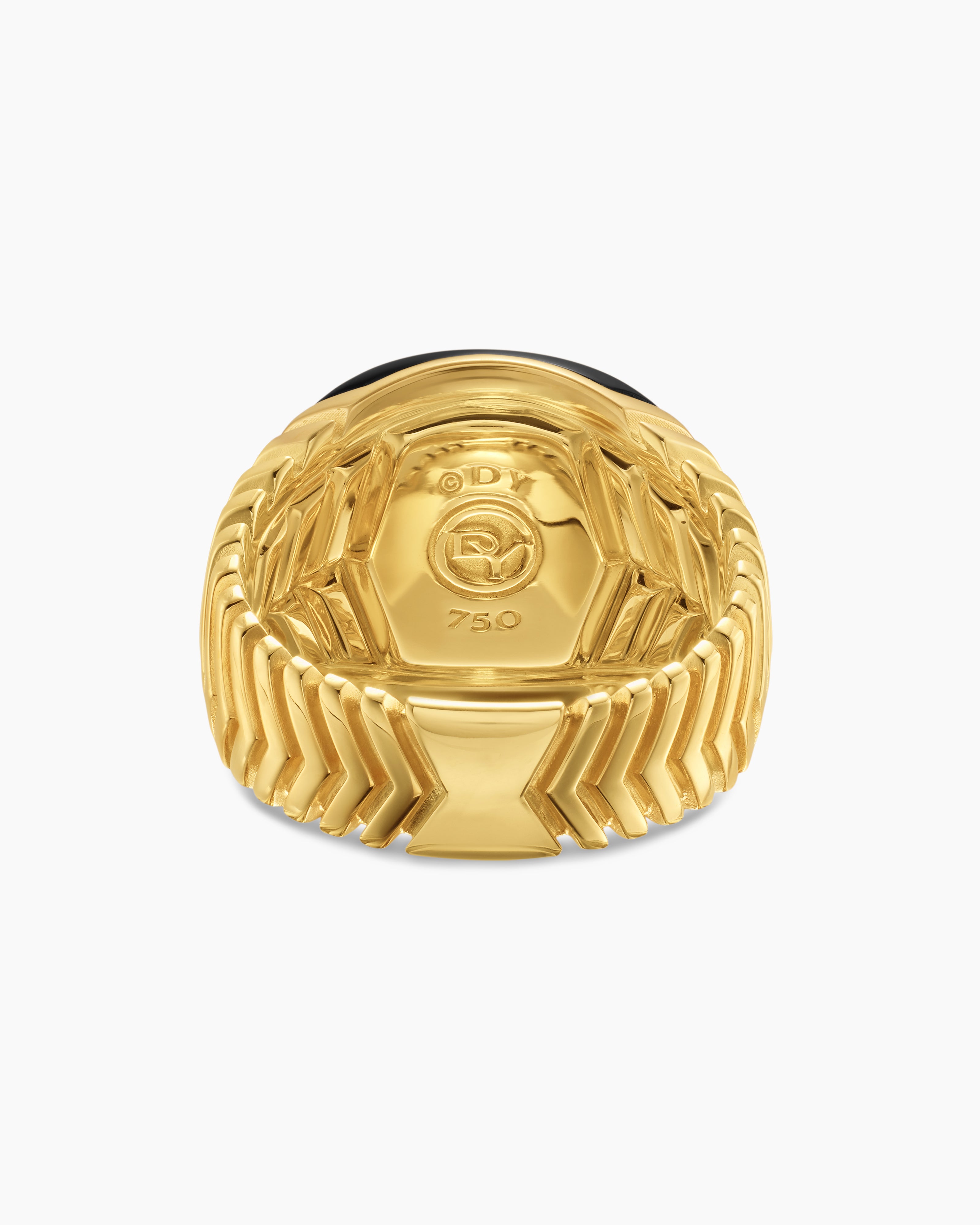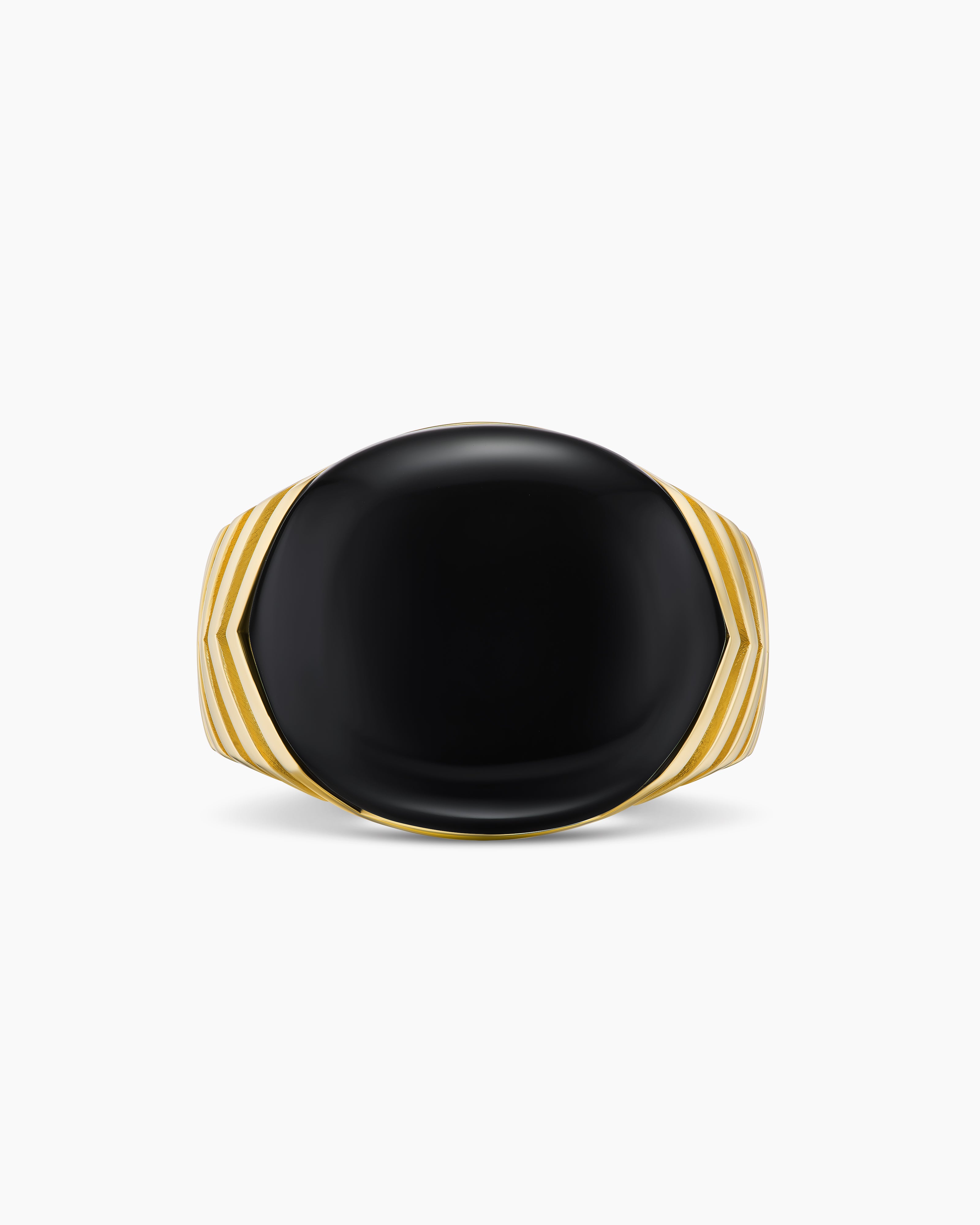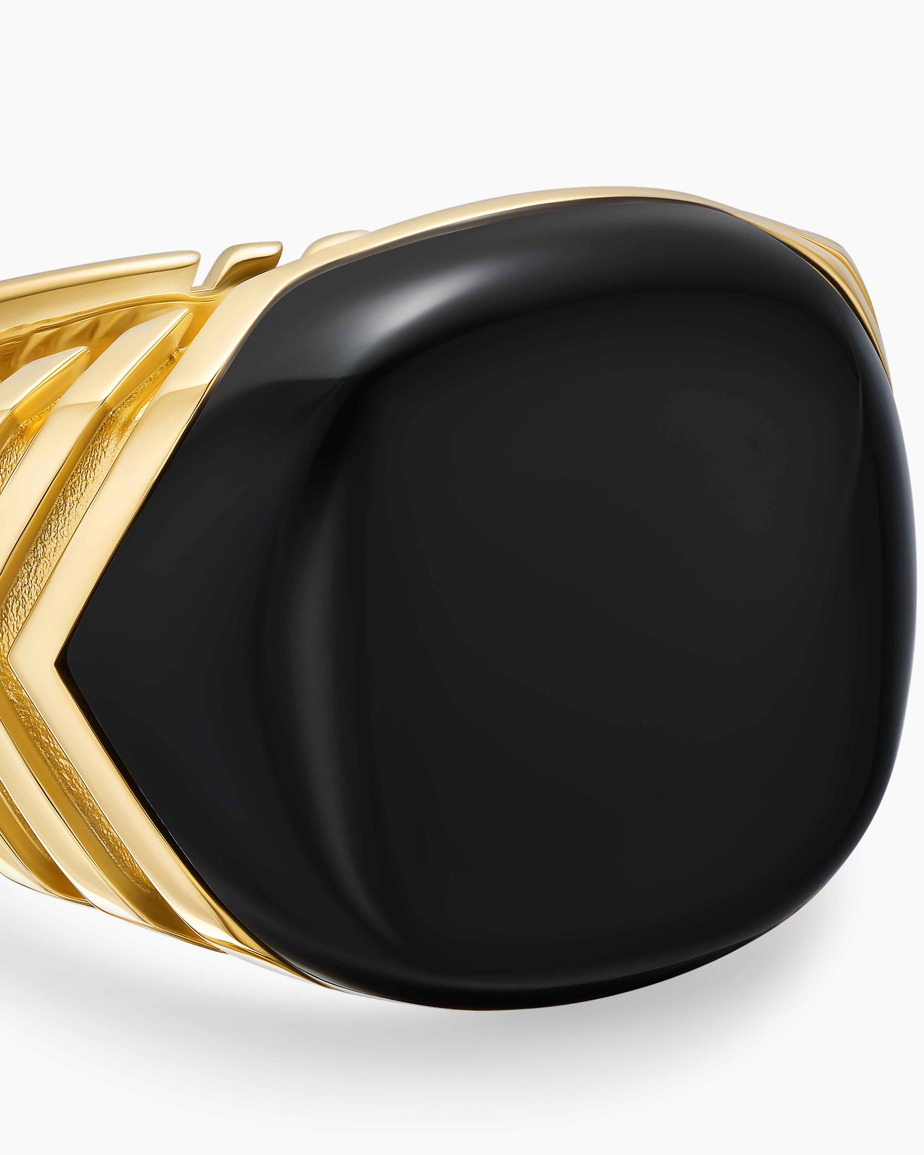 Chevron Signet Ring 18K Yellow Gold with Black Onyx, 18mm