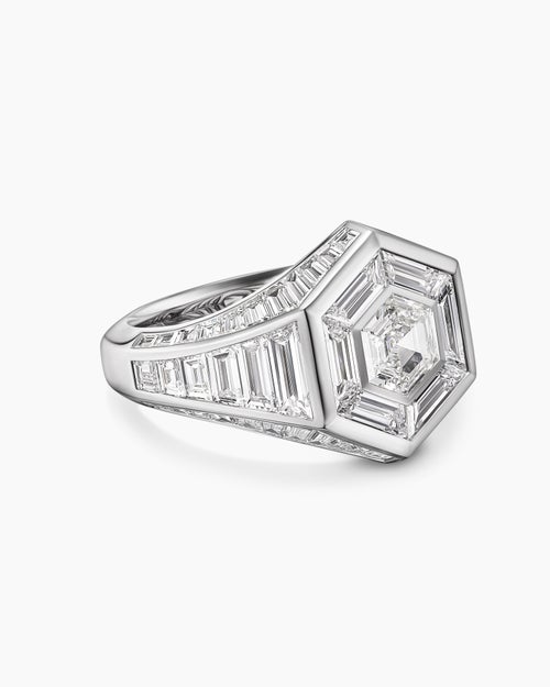 Men's Deco Signet Ring Platinum with Diamonds