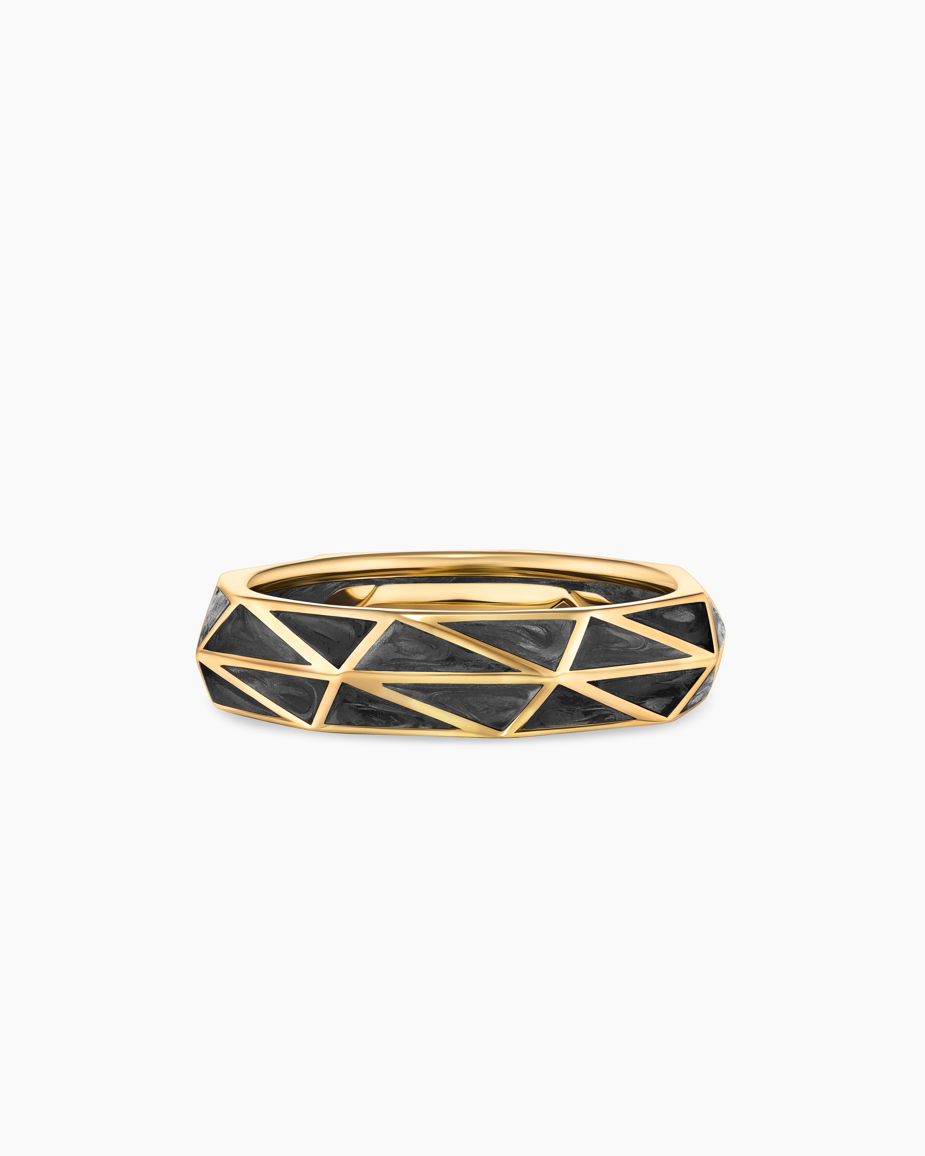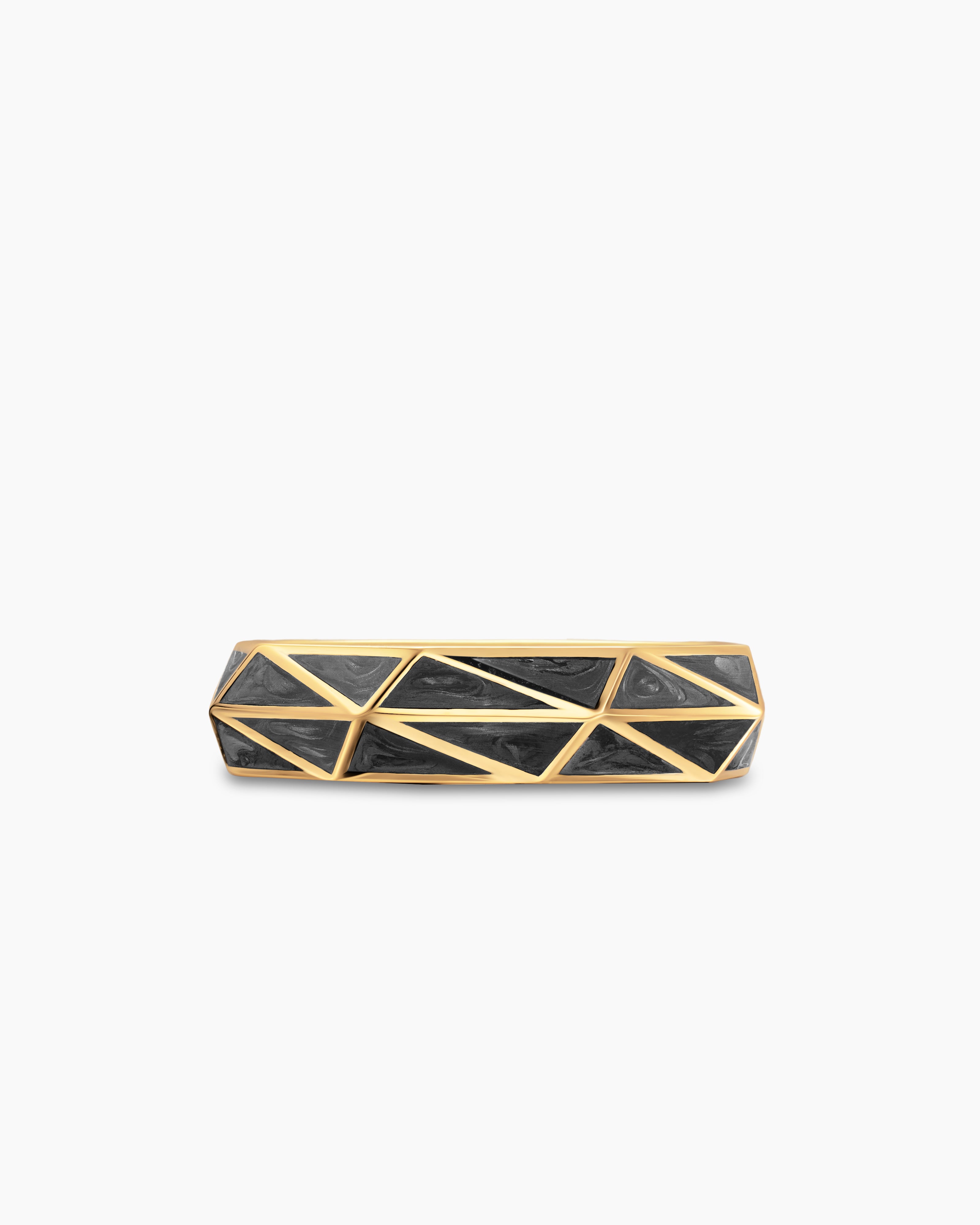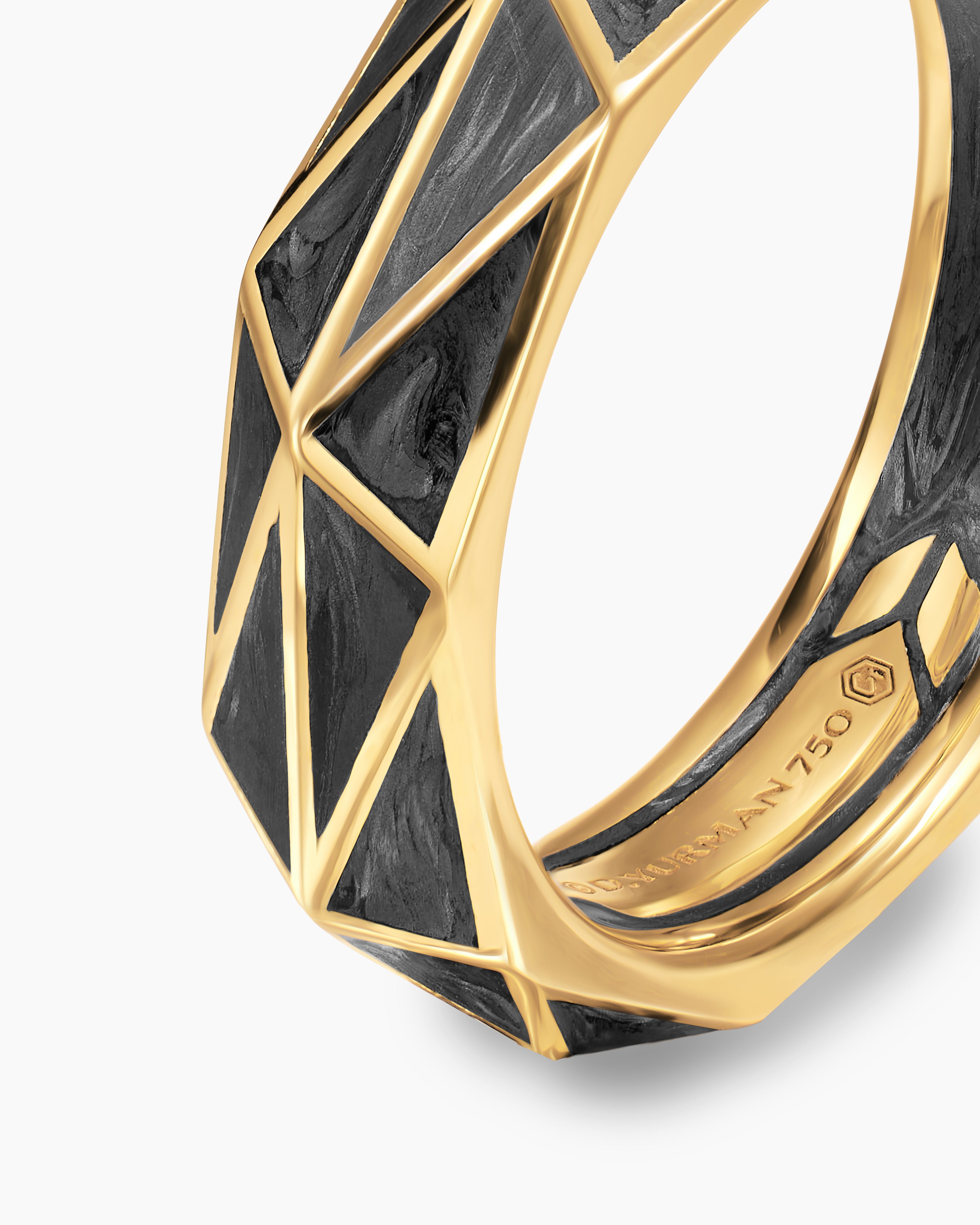Faceted Band Ring 18K Yellow Gold with Forged Carbon, 6.2mm
