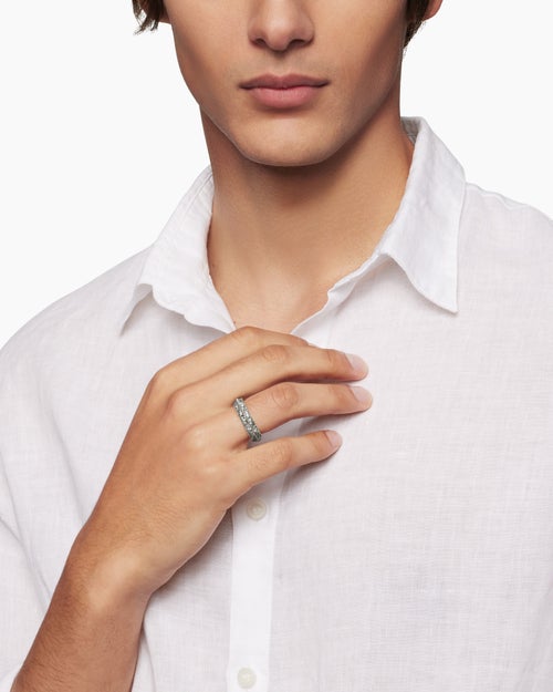 Faceted Band Ring Sterling Silver with Diamonds, 6.2mm