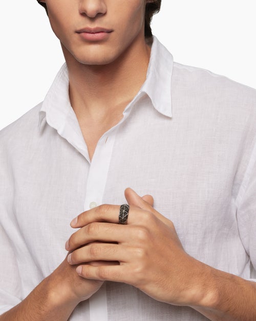 Faceted Signet Ring Sterling Silver with Black Diamonds, 11.3mm